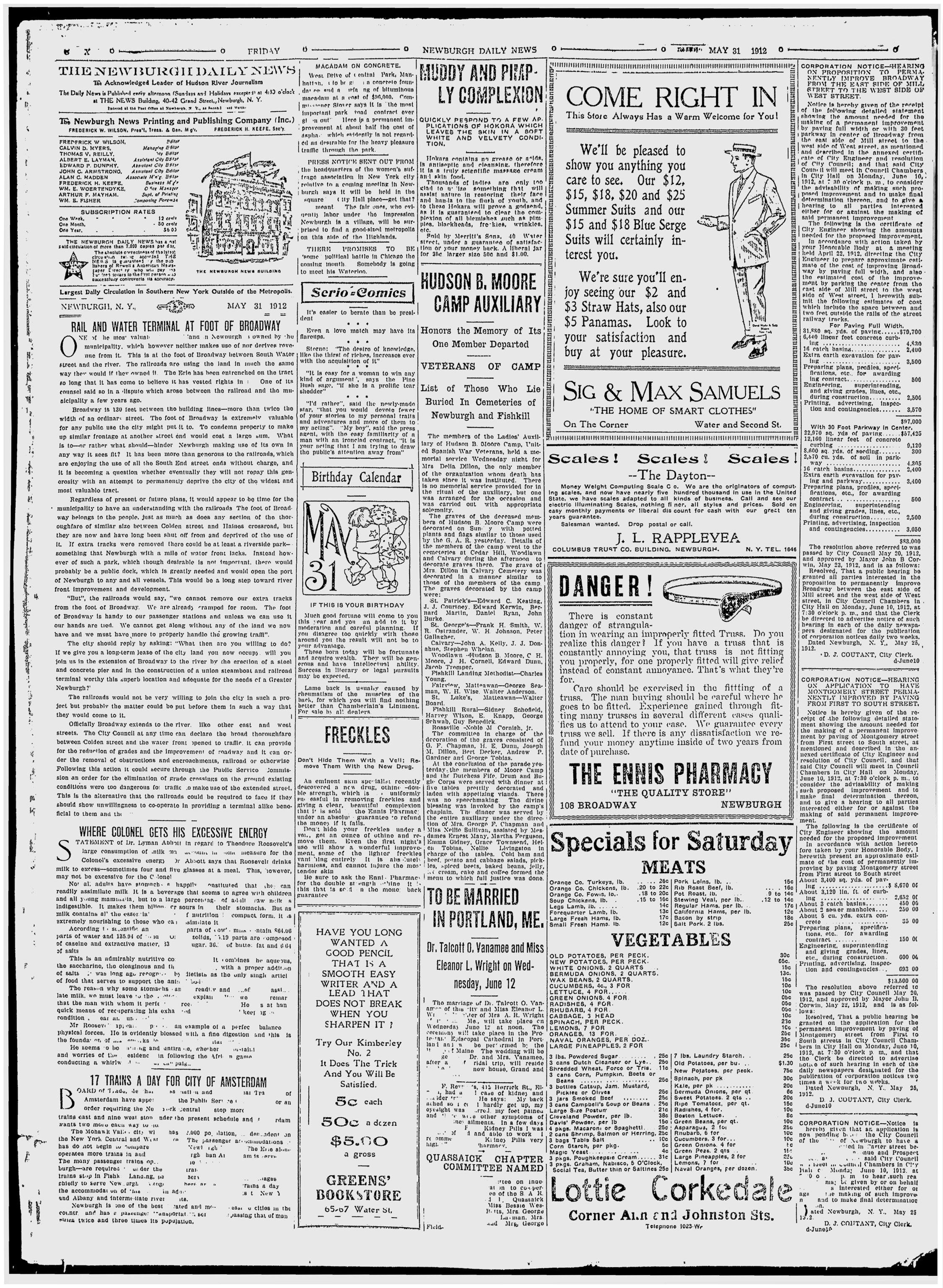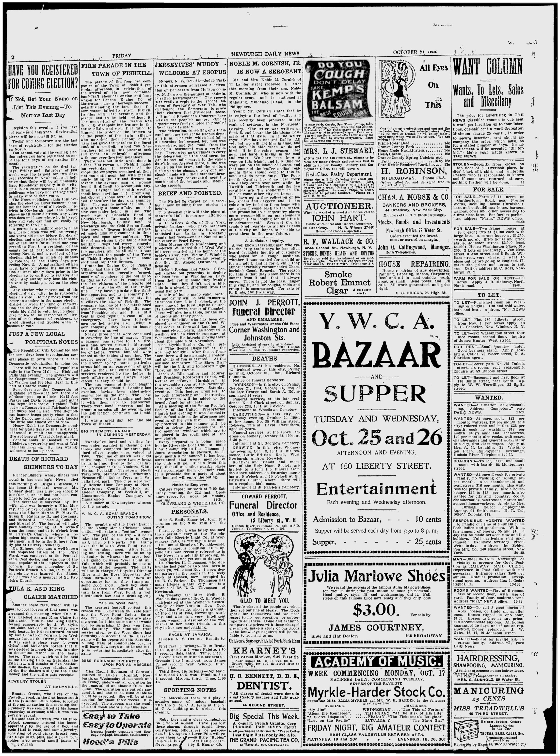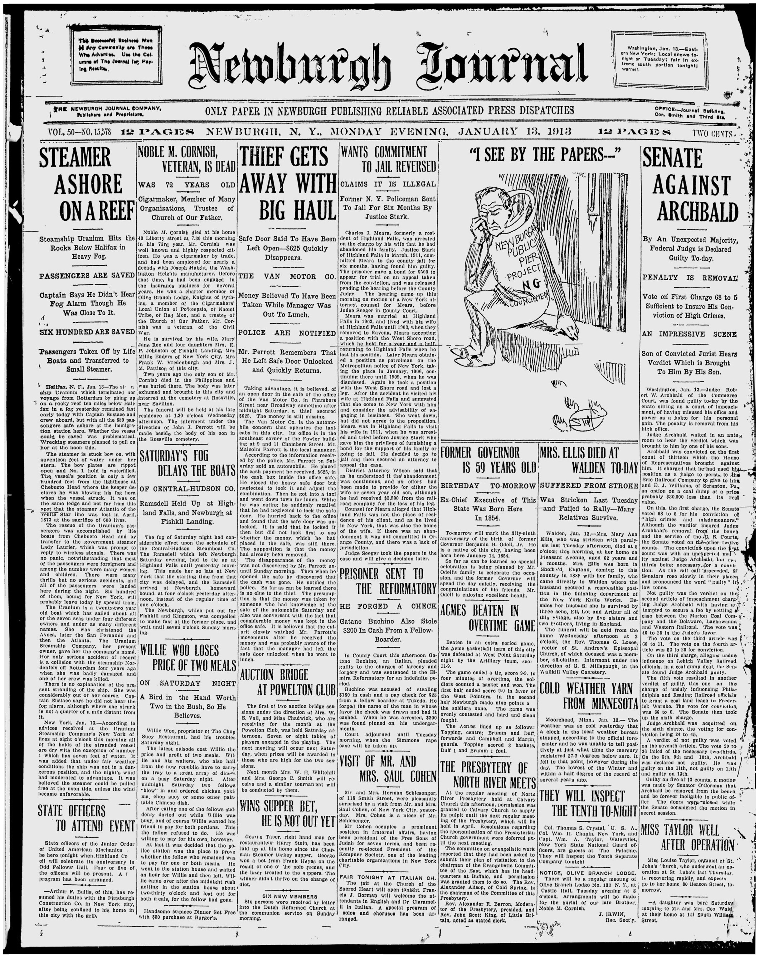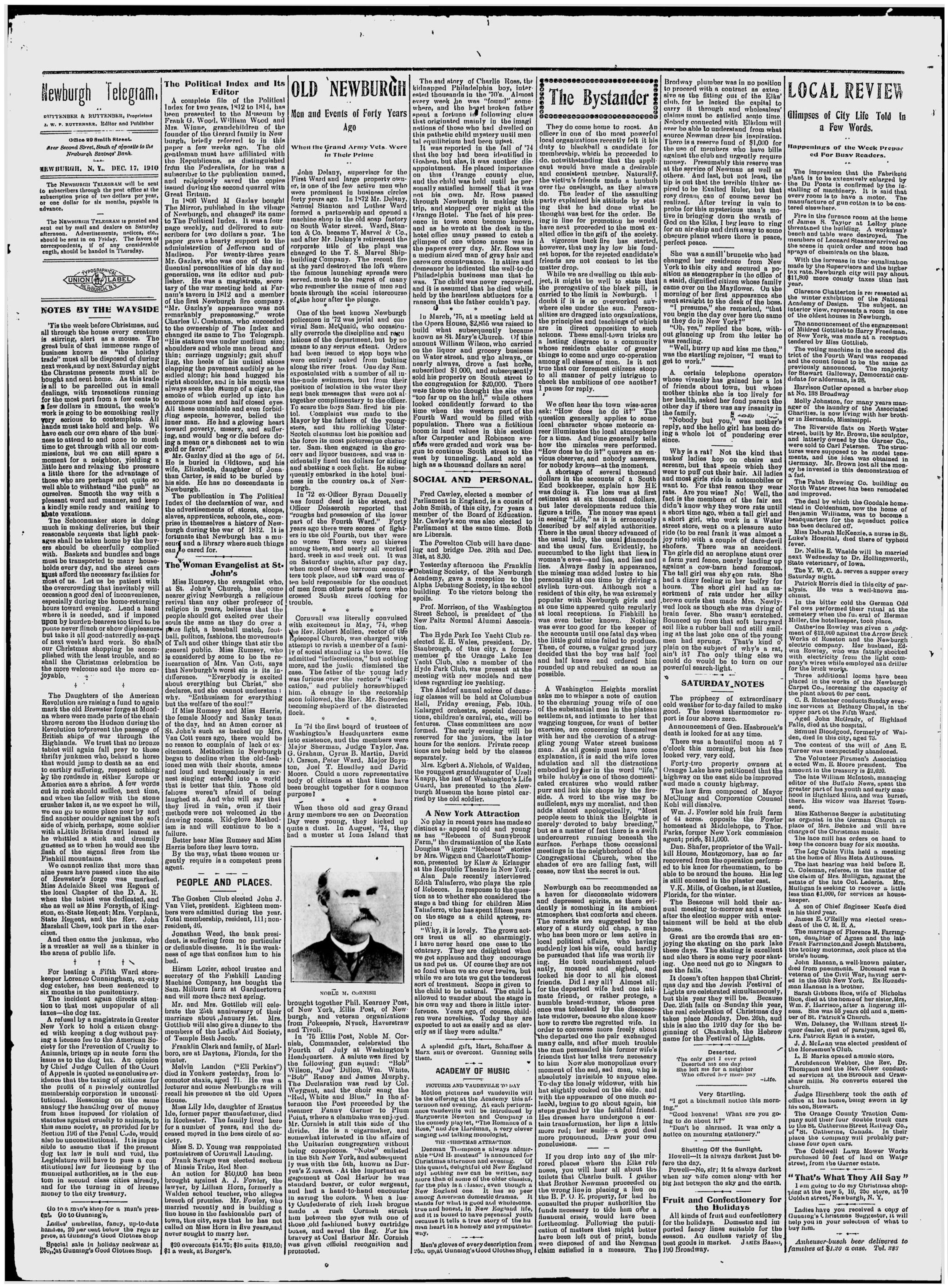 Concerning Noble M. Cornish Jr., published in the Newburgh Daily News, The Newburgh Telegram, The Evening News and the Newburgh Journal.
