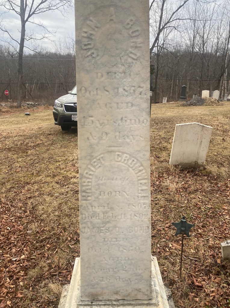 The Bond family was another prominent family in the early days of the Town of Newburgh. Some readers may remember I’ve previously written about the family and the small family cemetery off State Route 52, on Corel Place.
