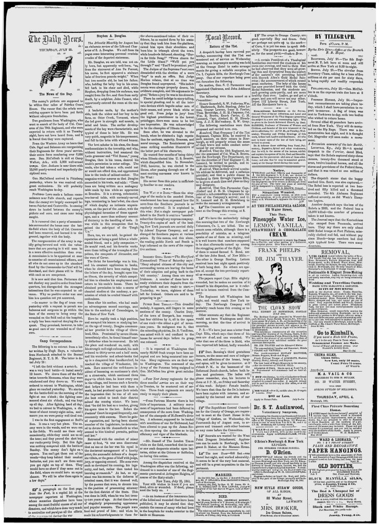 There is mention of Pvt. Bond’s actions during the engagement in the Daily News, published on July 26th, 1861. Apparently, he was killed instantly, being shot through his heart. The article details the actions of the 71st Infantry on the day of the battle.